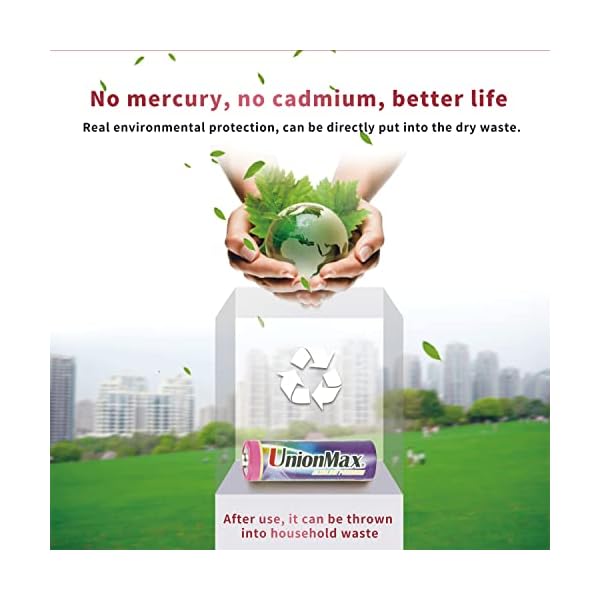 Unionmax AA Batteries – Maintain Energy As much as 10 Years in Storage,Explosion-proof metal, leak-proof sealing ring, secure and safe use.